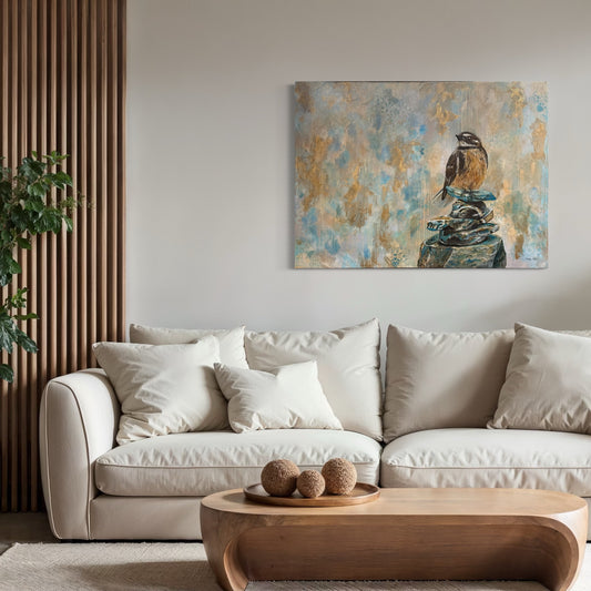 Each commissioned piece in this collection is a co-creation—guided by your vision, and expressed through my artistic voice. You choose the bird, the colours, the size, and the feeling you'd like the piece to carry. From there, I tune in, layer by layer, and allow the painting to emerge in the way it needs to.