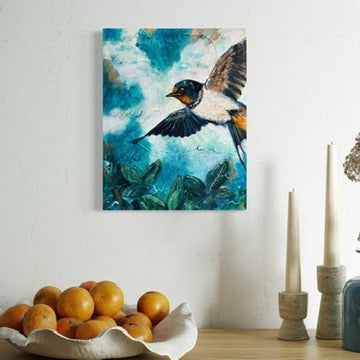 Ideal for smaller spaces, these pieces offer a daily dose of joy, colour, and connection. From bold birds to soft symbolism, every painting is created to speak to the spirit — quietly powerful and full of presence.