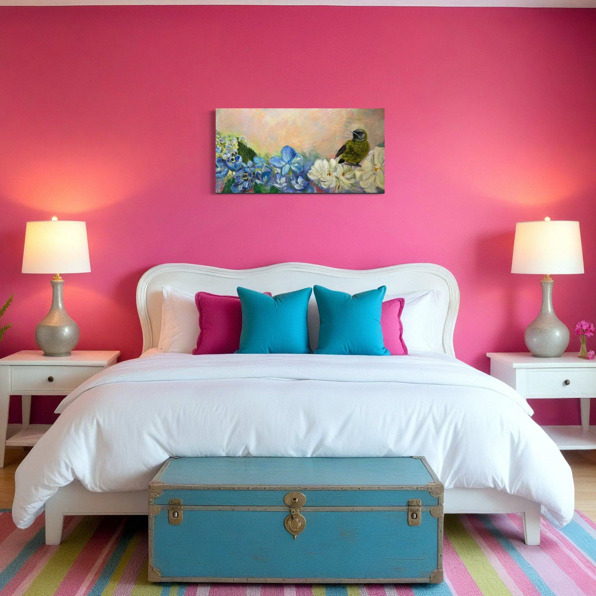 I painted this piece to capture the beauty of these small yet profound interactions—the unseen conversations between bird and bee, flower and breeze. Bellbird’s Garden is an invitation to slow down, to notice the joy in the tiniest of moments, and to feel the deep connection that runs through all living things.