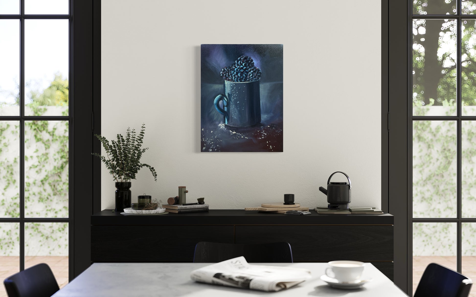 Black is never just black it always has a colour in it of some kind and I think this piece illustrates that super well. In painting we don’t use black, we mix it using many different shades of colour - this keeps the painting feeling alive!
