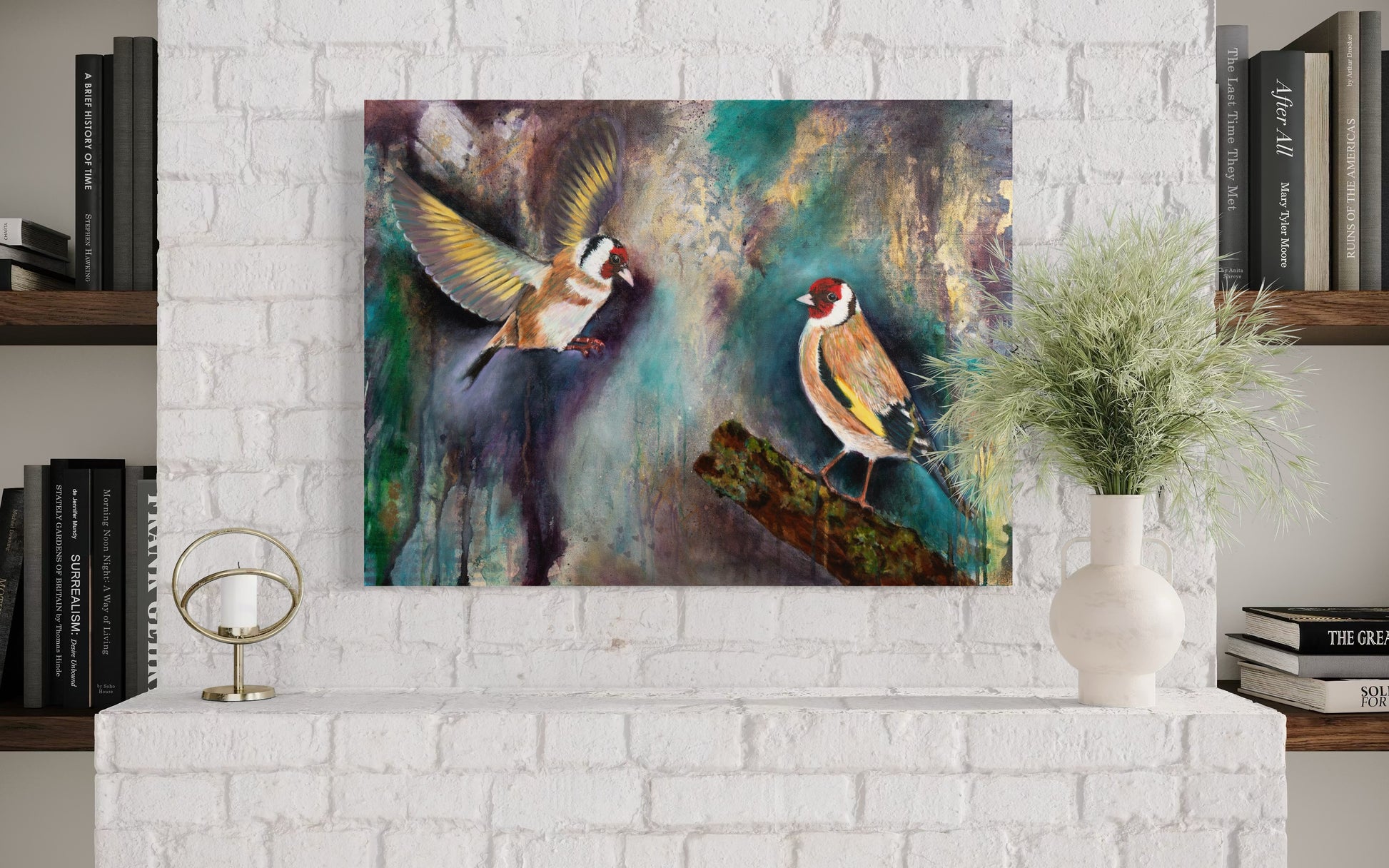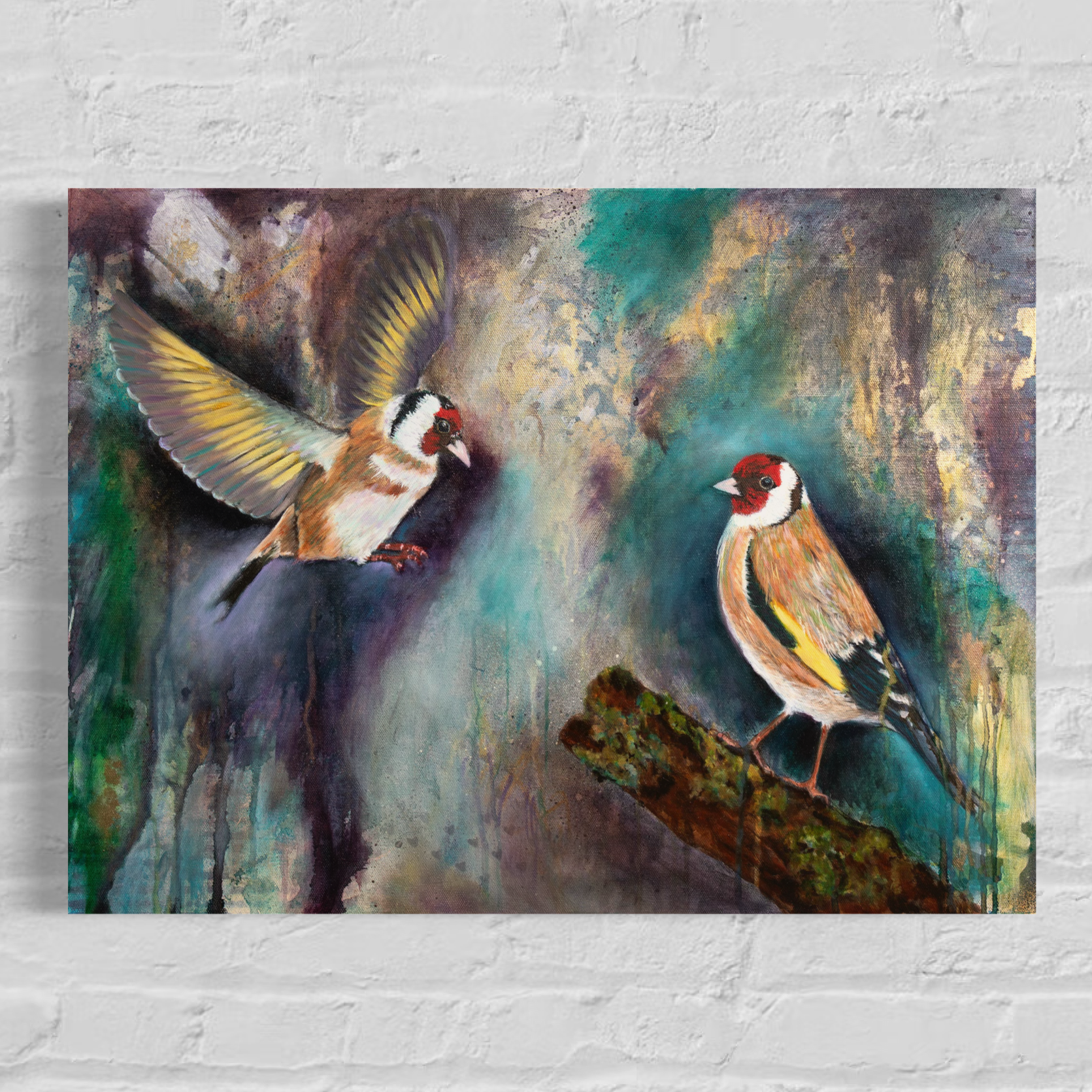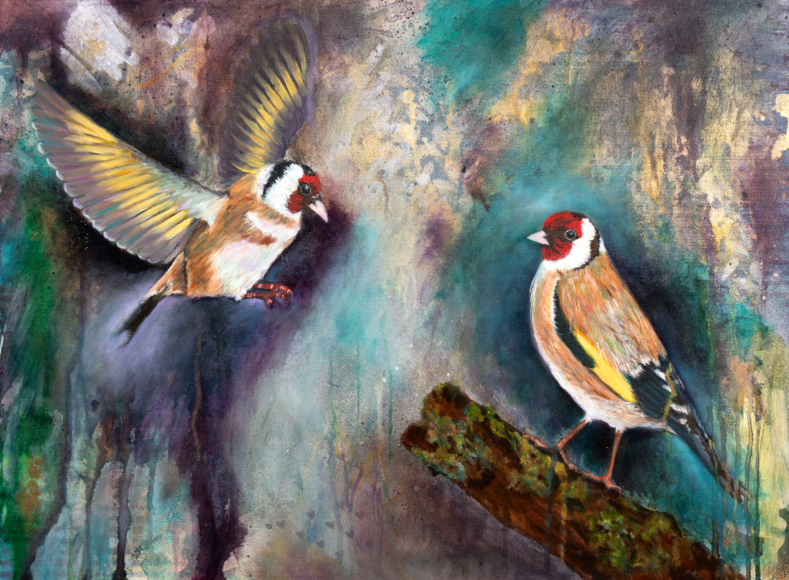 Two goldfinches sit nestled together, lost in love, bound by an unspoken promise—we are in this for the long haul, my dear. Their golden feathers glow with warmth, reflecting a connection built on trust, devotion, and an unbreakable bond.