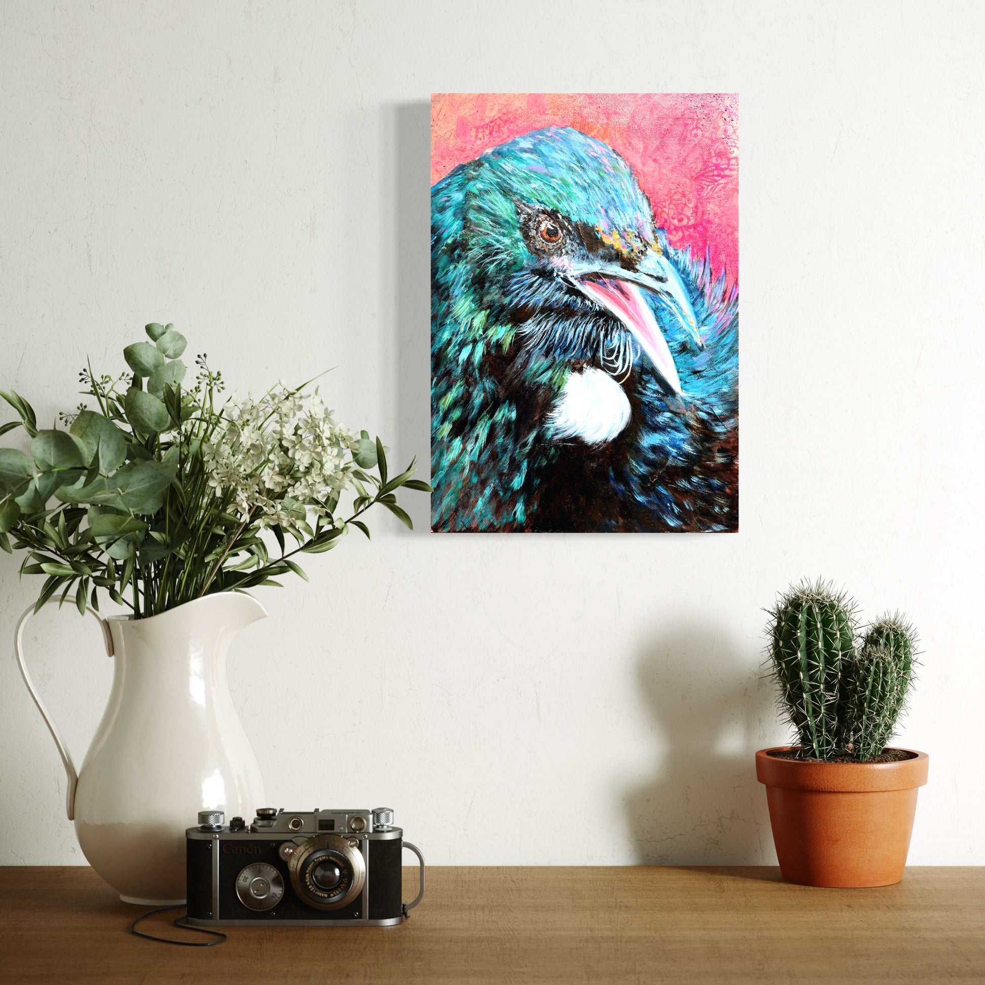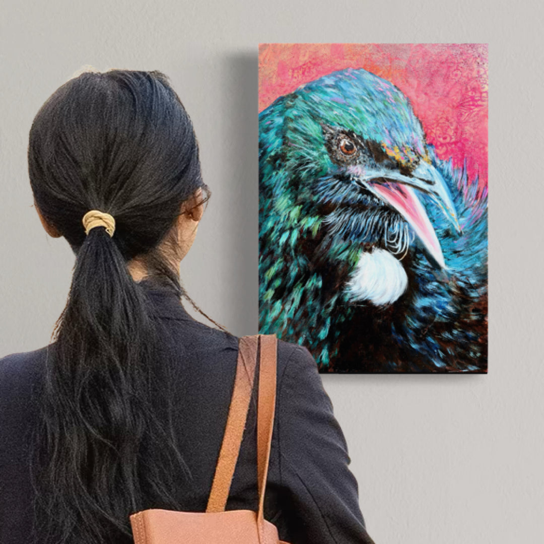 There’s no holding back in Soulfire. This tui burns with truth - feathers alive with colour, voice open and fierce. He’s the moment before you finally say what needs to be said, the breath before the breakthrough. Every brushstroke carries that raw, electric pulse of self-expression and unapologetic fire.