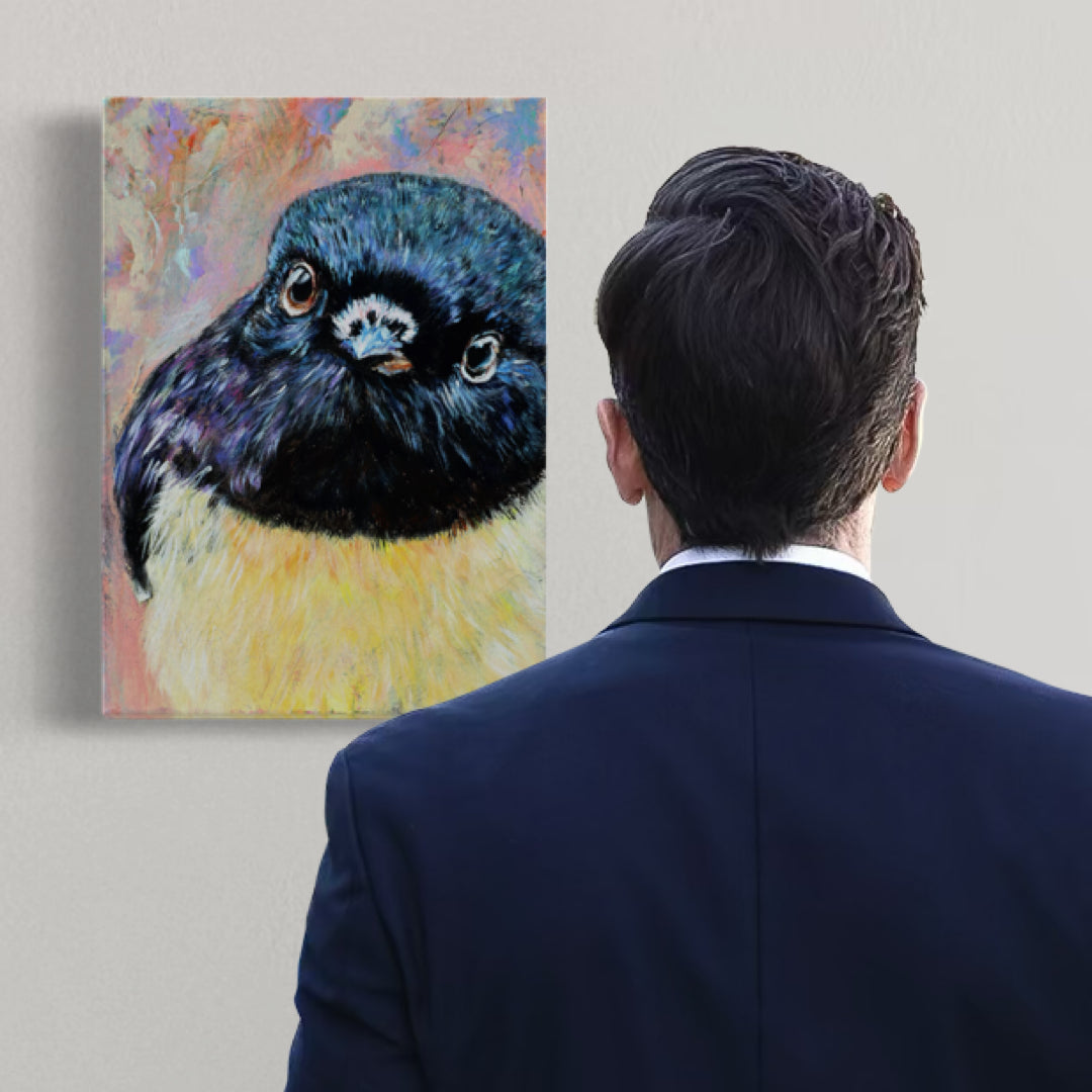 With feathers dipped in midnight and sunlight, this tomtit carries the spark of something ancient and quietly powerful. Don’t be fooled by her size - she burns with purpose. A watcher, a flicker, a fearless whisper of truth, she’s here to remind you that the smallest flame can light the way.