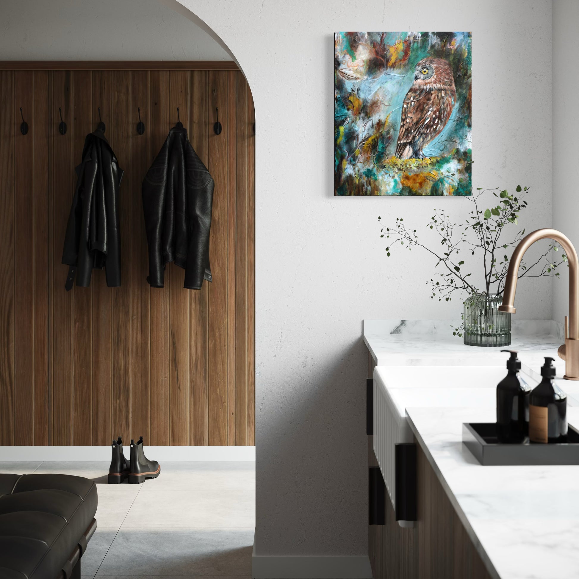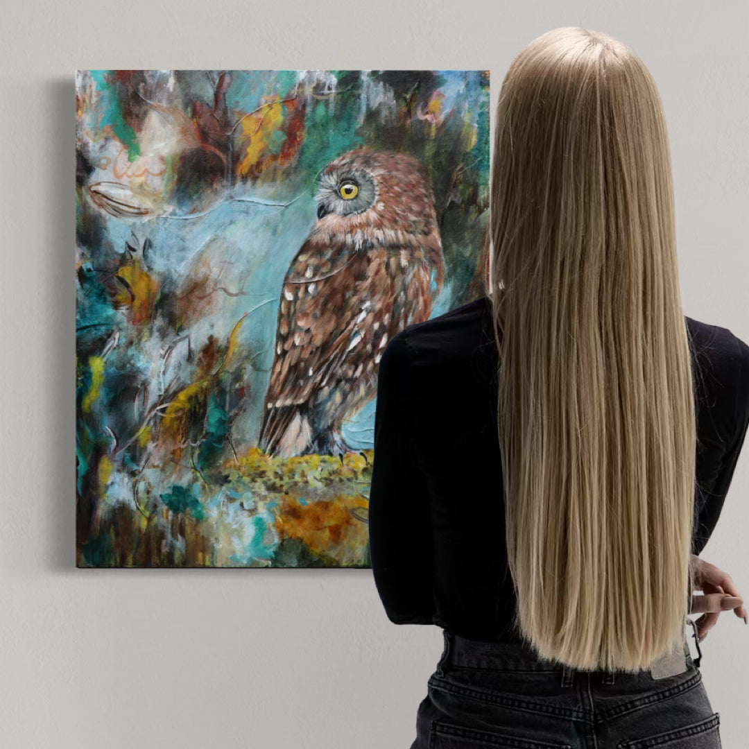 The ruru stands watchful and grounded, carrying the fire without being consumed by it. This is the power of emotional alchemy - when feeling is allowed to move, shape, and settle into something strong and beautiful. The fire doesn’t disappear; it becomes clarity, protection, and depth.