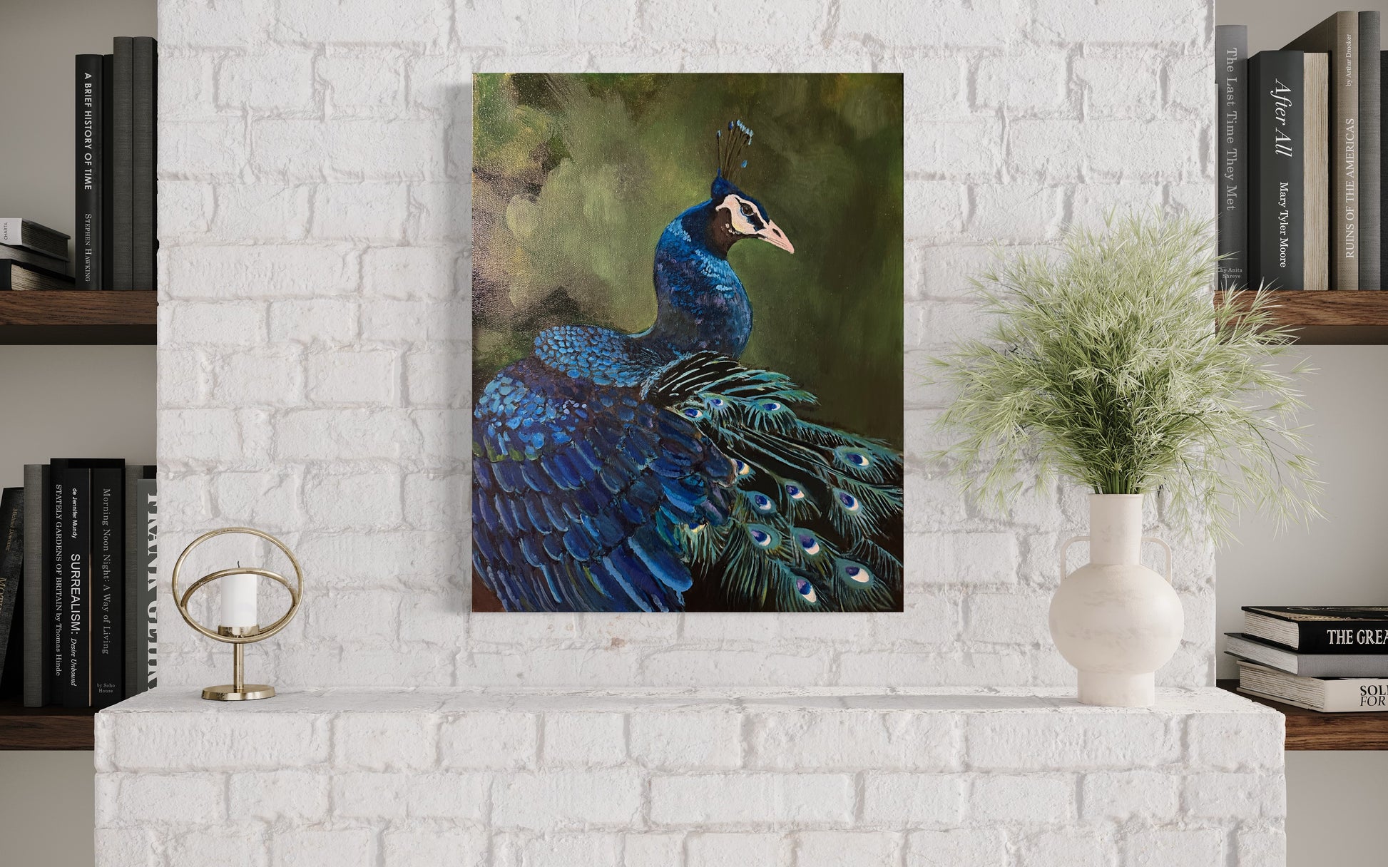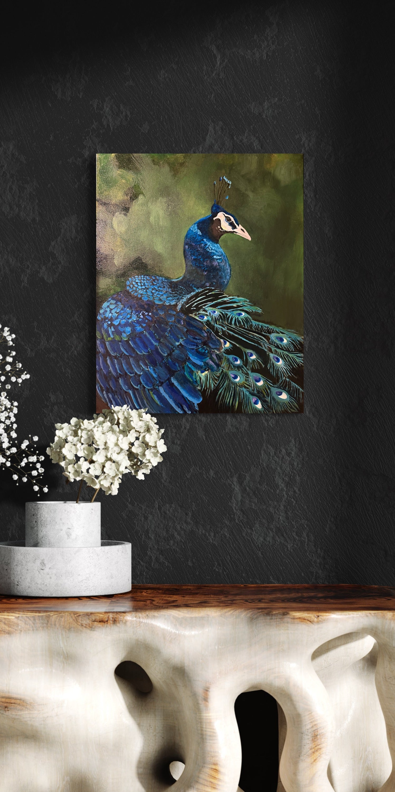 This peacock study is based on the old master’s subtraction method where a dark base is applied & the image subtracted out. A very cool process to learn! I love this peacock - the oils are so lush - his energy will bring joy to any location!