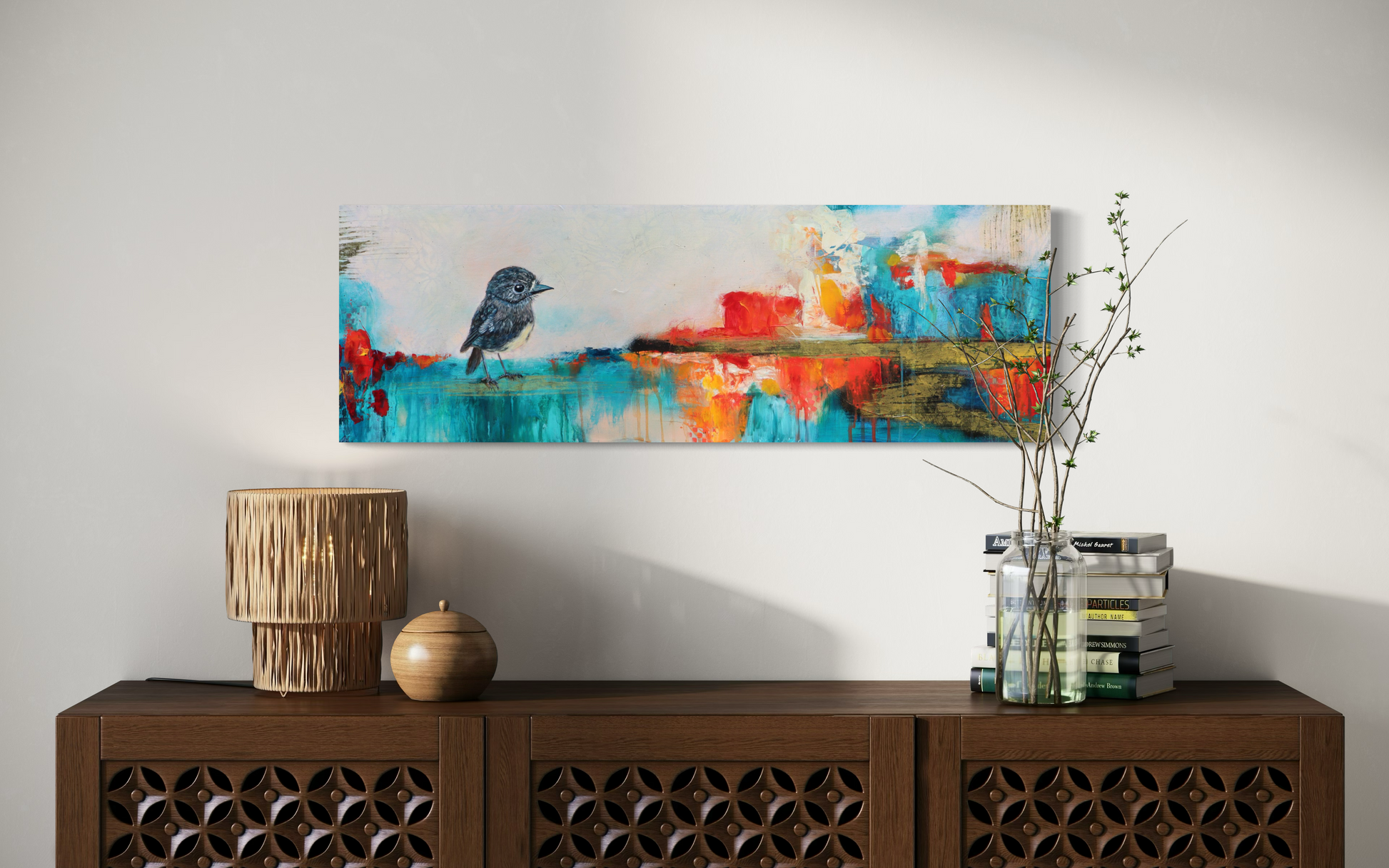 Whisper of the Horizon is part of my Feather & Form series, where birds and abstraction weave together to tell stories of connection, growth, and spirit. May this piece invite you to embrace your own horizons, knowing that every journey begins with a moment of stillness—and the quiet whisper of what’s to come.