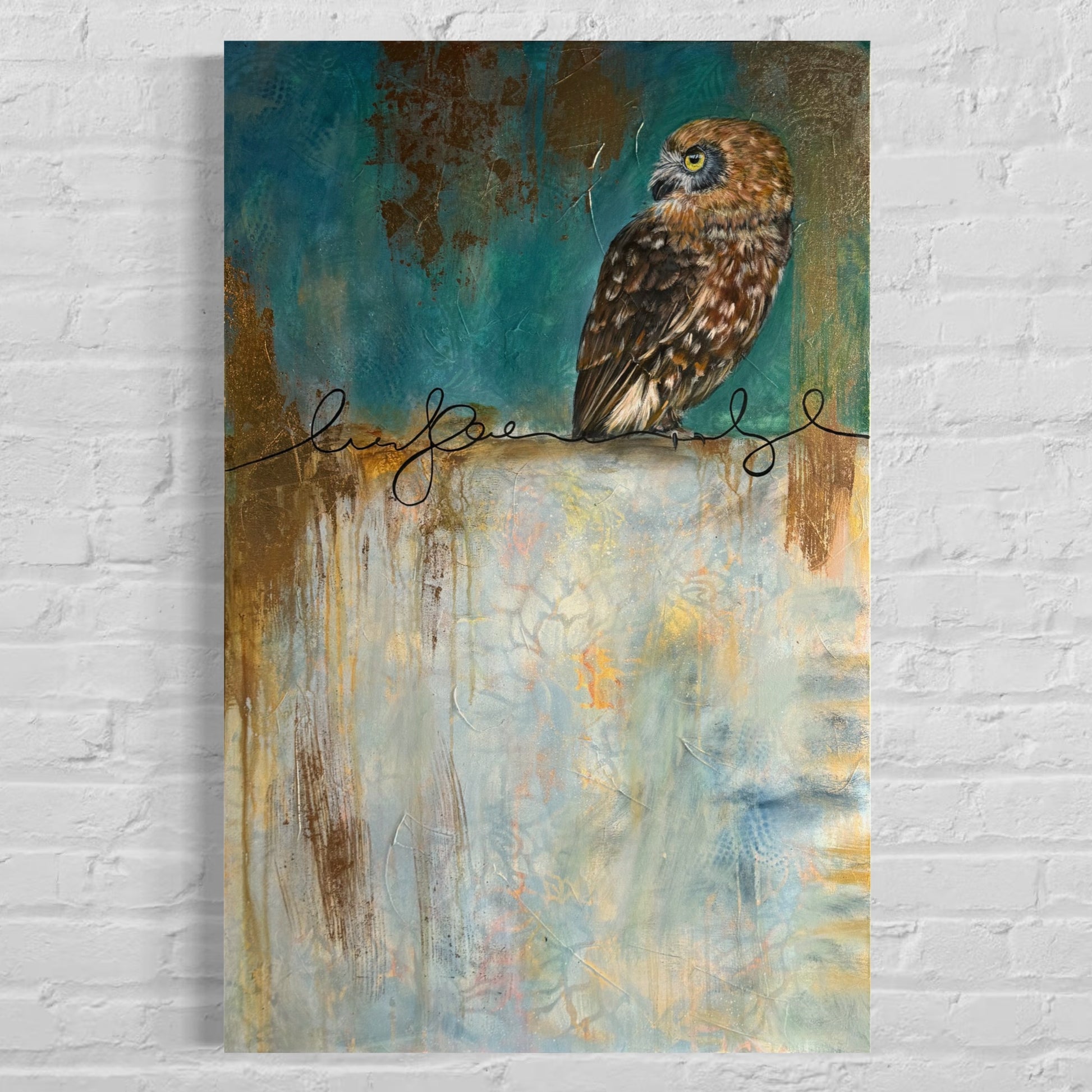 With its rich layers of texture, ethereal gold accents, and serene turquoise tones, Ruru’s Dream creates a portal to a world where inner truths meet boundless potential. Perfect for the adventurer of the soul, this artwork whispers of journeys unseen and dreams yet to unfold.