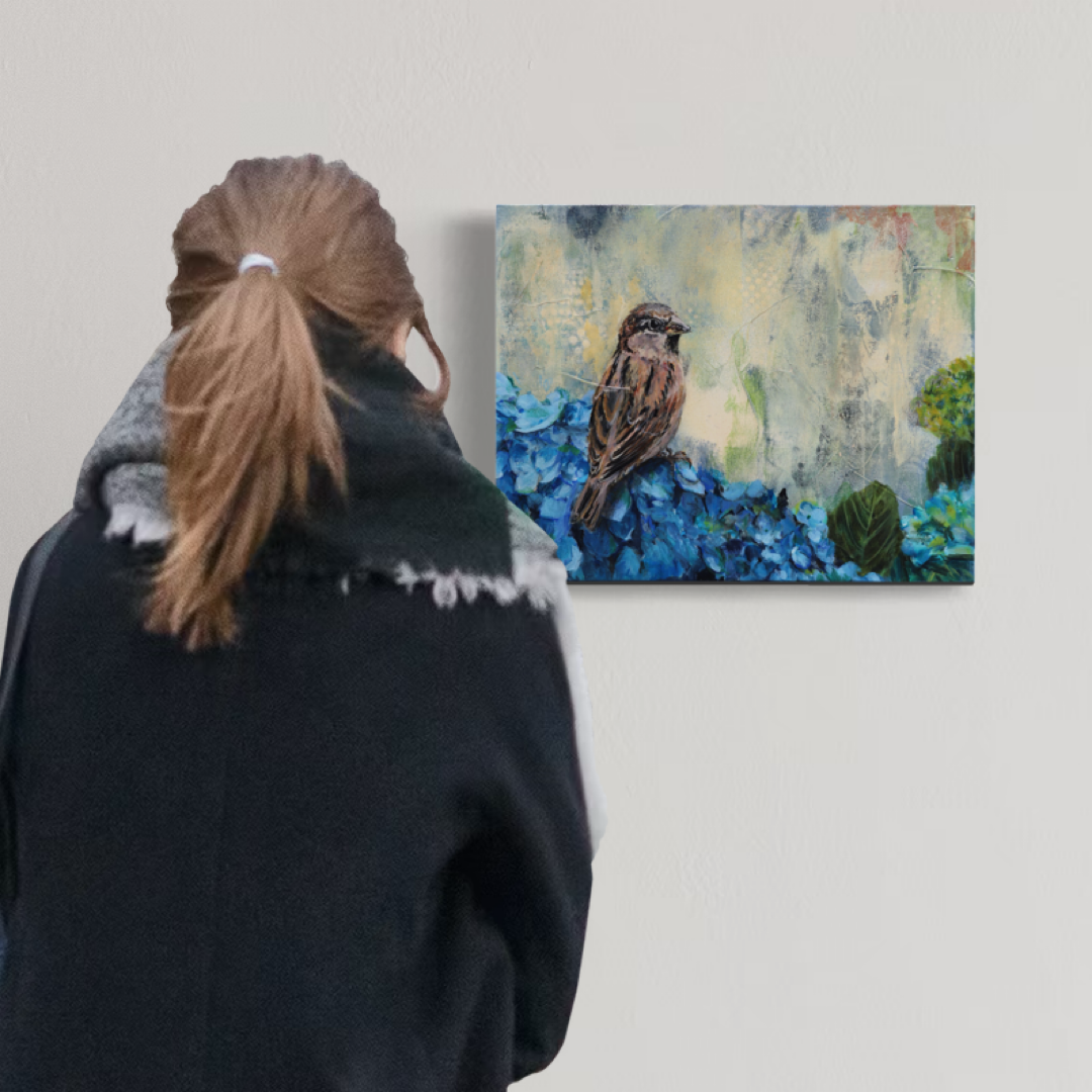 In Sparrow's Garden of Light, I’ve captured the quiet magic found in life’s simplest moments. The sparrow, perched among blooming petals, symbolises resilience and the light we all carry within. This piece invites you to reconnect with your inner strength and notice the beauty that surrounds you, even in the smallest places.